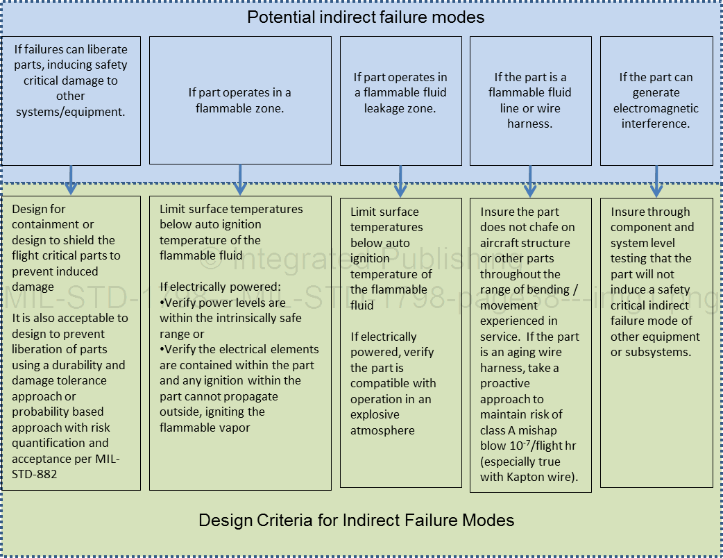 An example is: An Auxiliary Power Unit experiences an uncontained failure sending hot turbine material into a fuel tank, resulting in a fire which causes loss of aircraft. The HA is a critical tool available to the MECSIP engineer to identify the hazards associated with each subsystem and define mitigations for those hazards. A list of indirect failure modes and the appropriate design criteria to control those hazards are listed in 5.2.12.3.1 through 5.2.12.3.5 and shown on